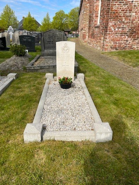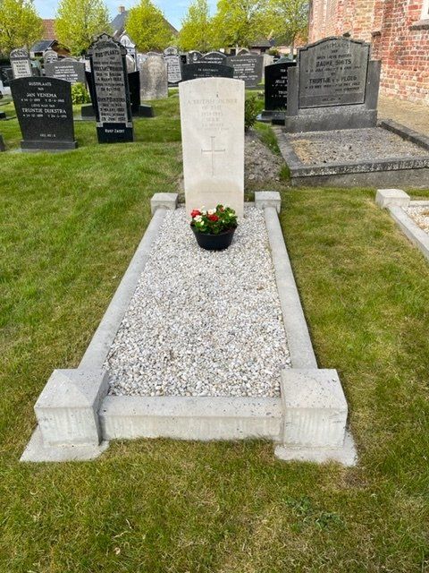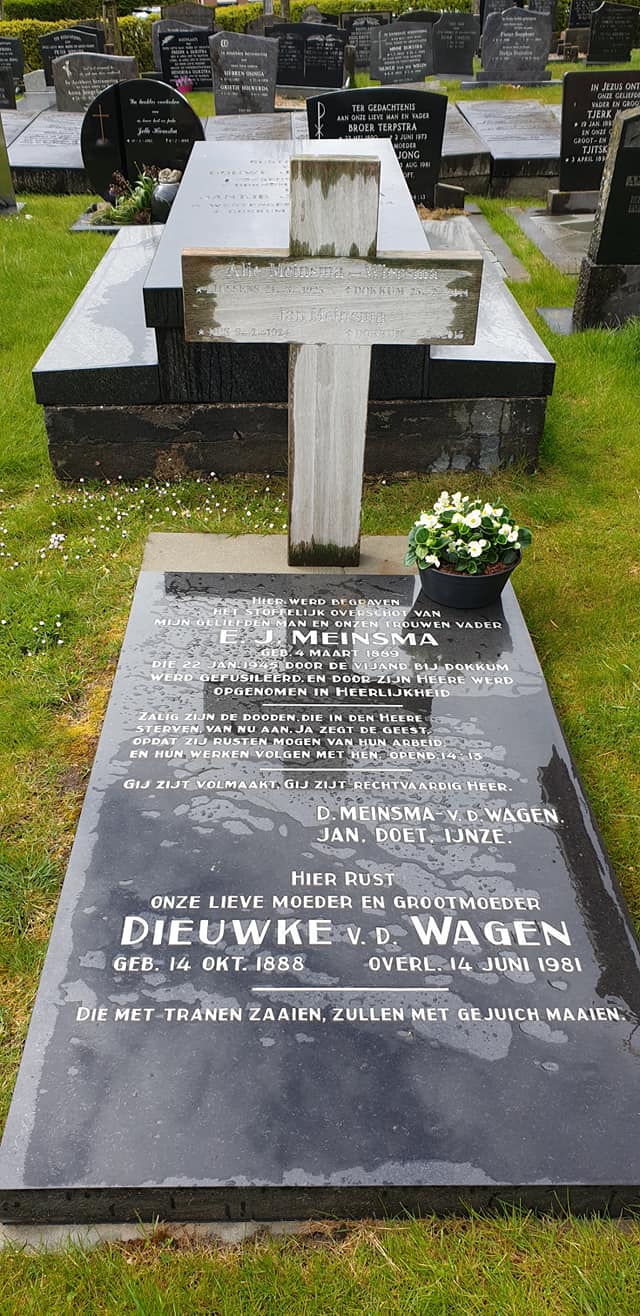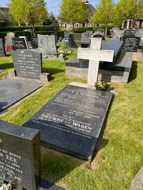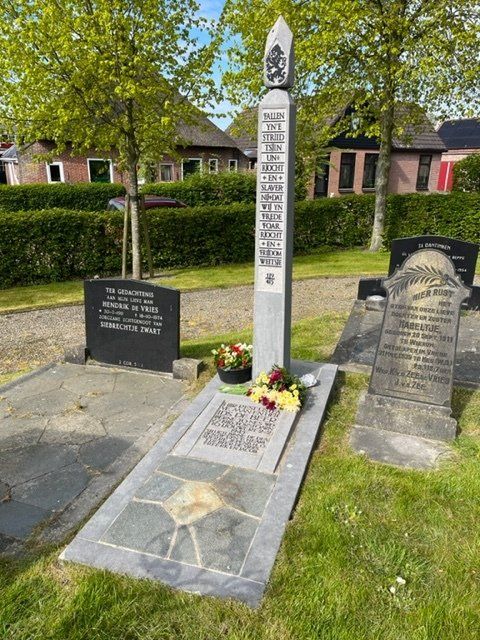 Tussen de regenbuien werden de bloemen door de Vereniging voor Dorpsbelangen Nes op deze vier graven geplaatst, zoals ieder jaar.